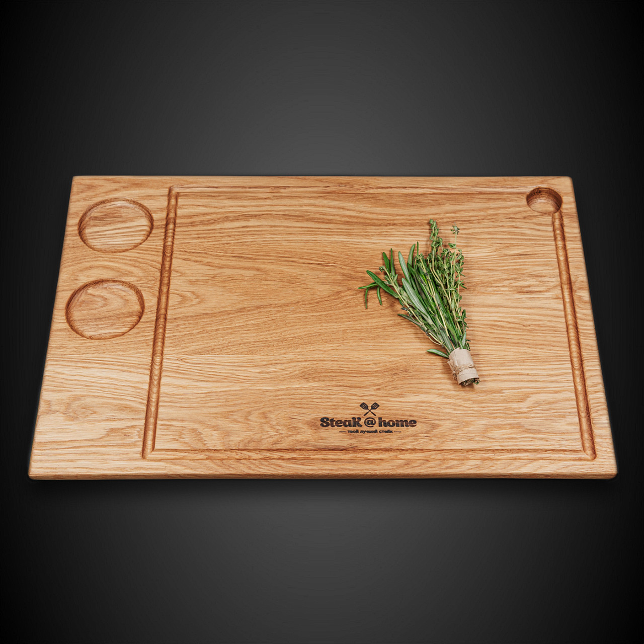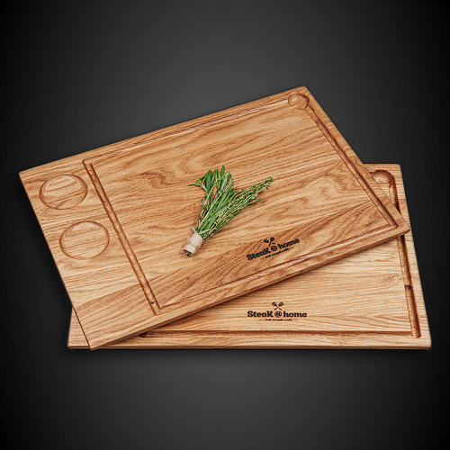 Тут оригинальный подход можно проявить в деталях, которые не бросаются в глаза, но способны ненавязчиво подчеркнуть ваш особенный ужин эффектной подачей. Вот для этого мы и приготовили эксклюзивную доску из дуба ручной работы. Приятное на вид и ощупь дерево, удобные выемки для соуса — у неё есть всё, чтобы вы могли наслаждаться говяжьим стейком, не отвлекаясь на мелочи сервировки.