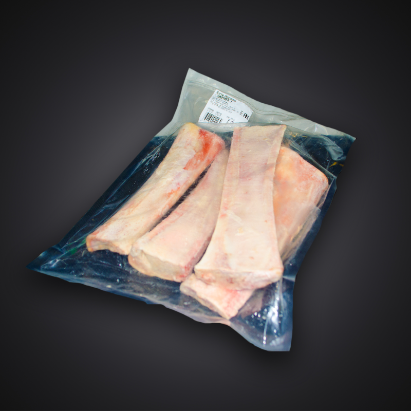 Говяжьи мозговые кости берцового отруба, идеально подходящие для запекания в духовке или на гриле. При приготовлении мозг становится нежным и кремовым, а снаружи образуется аппетитная румяная корочка с насыщенным мясным ароматом.