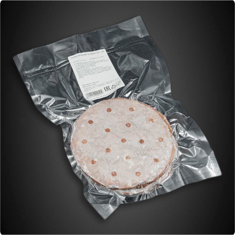 В упаковке 2 котлеты общим весом 320 грамм. Котлеты изготовлены из вызревшей мраморной говядины абердин Ангус влажного вызревания и состоят на 80% из мяса и на 20% — из жира. Идеальны для приготовления бургеров. Котлеты находятся в герметичной упаковке и полностью готовы для жарки, что может сильно сэкономить Ваше время. После вскрытия хранить при температуре от +2 °C до +6 °C не более 48 часов.