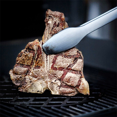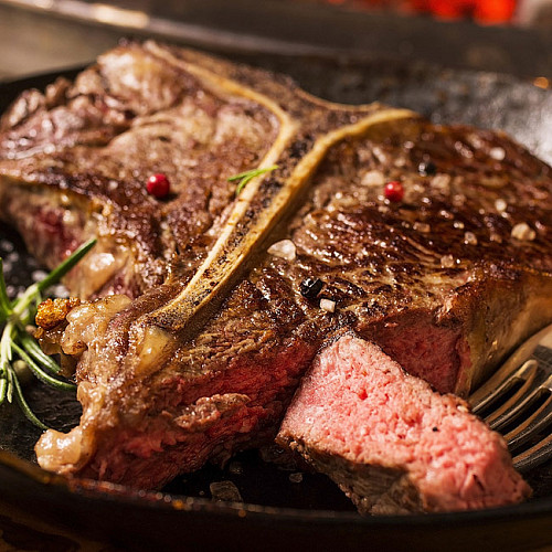 Насыщенный, с брутальной Т-образной костью, этот стейк — настоящий король стейков, бескомпромиссный ужин чемпиона |