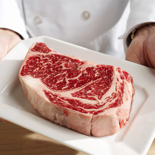 1/2 отруба Рибай. Отруб Рибай Чойс ( Choice) кукурузного откорма от 180 дней — это идеал в мире стейков. Классика, с которой так или иначе знаком каждый, кто интересуется мясной культурой. На языке мясников «рибай» обозначает «край на ребре», самый мясистый отруб из передней части туши. Стейк состоит из одной большой мышцы и нескольких поменьше. Рассмотрев его, вы заметите тонкие жировые прослойки, напоминающие узор на мраморе — отсюда и пошла классификация мяса по «мраморности». Рибай кукурузного откорма подходит для настоящих любителей стейков с ярко выраженным мясным вкусом.