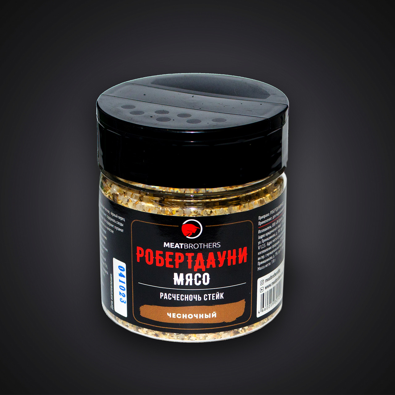 Смесь специй Робертдауни сожержит соль, сушеный чеснок и чёрный перец крупного помола.