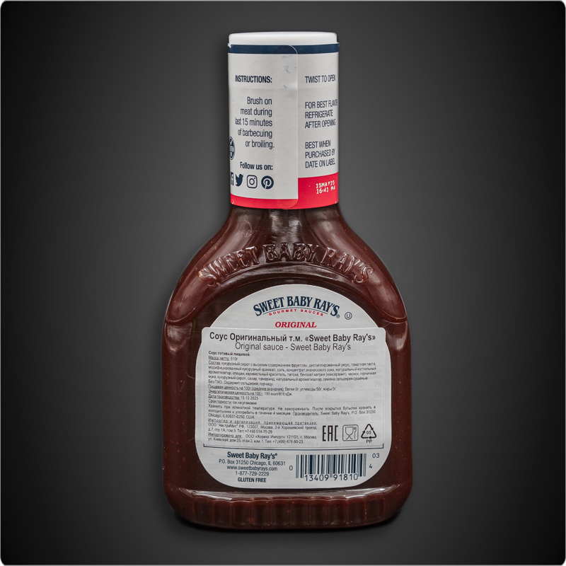 Sweet Baby Ray’s Original Barbecue Sauce — соус барбекю с легким дымком на томатной основе, идеально подходящий для жареного или приготовленного на гриле мяса. Его можно использовать в качестве глазури, нанося соус на поверхность мяса несколько раз в процессе приготовления на гриле или жарке.
