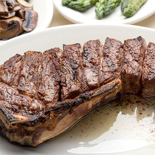 У нас можно заказать стейк Рибай на кости толстый край с доставкой.