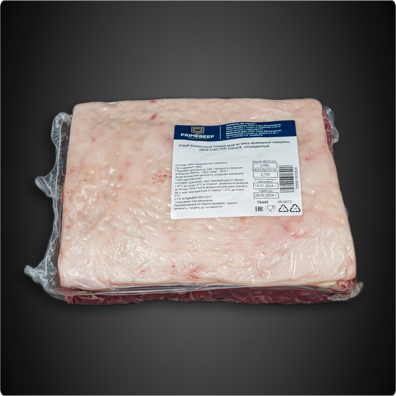 Стриплойн. Расположение в быке: тонкий край, спинная часть, поясничный отруб. Другое название: Тонкий край говядина, Нью-йорк стейк, Стрип, Чоризо, Канзас стейк.