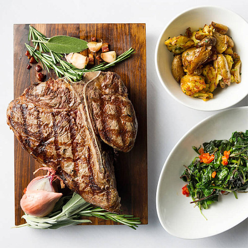 Насыщенный, с брутальной Т-образной костью, этот стейк — настоящий король стейков, бескомпромиссный ужин чемпиона |