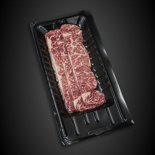 прошедших специальный откорм. Чем больше жировых вкраплений в мясе, тем выше уровень мраморности и мягче, сочнее получится стейк.