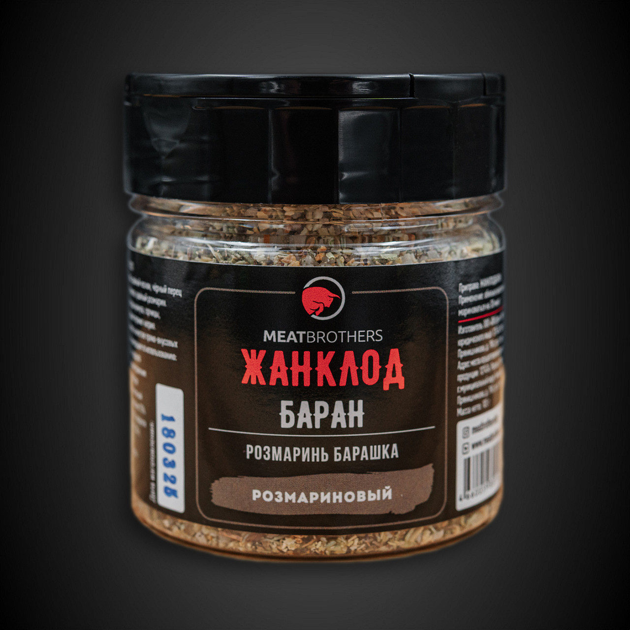 • Состав: Морская соль, сушёный розмарин, сушёный чеснок, чёрный перец молотый крупного помола.