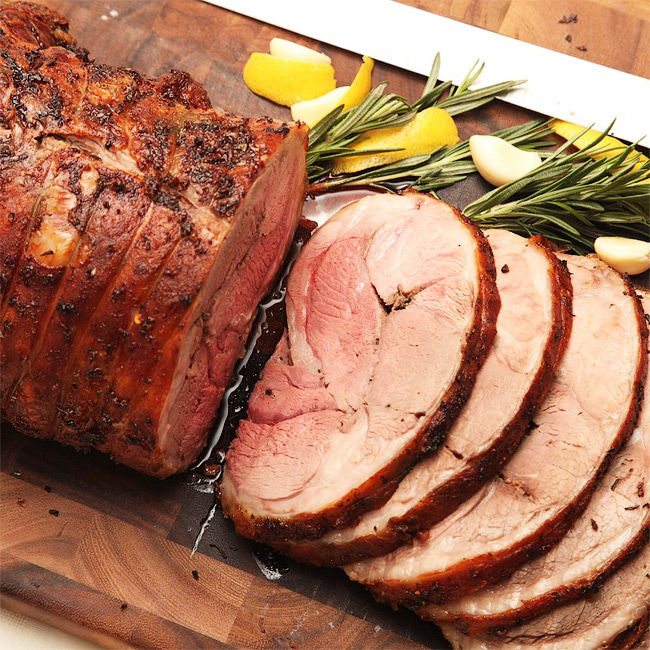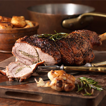 Замаринуйте ягнёнка на ночь. Запекайте при 175 градусах около 1 ч. 45 мин, или до прожарки medium rare/medium (55-60 градусов).