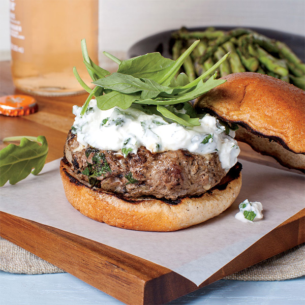Смешайте фарш, мяту, чеснок, 1 ч.л. соли и 1/2 ч.л. перца, разделите смесь на 4 равных части и сформируйте из них котлеты.