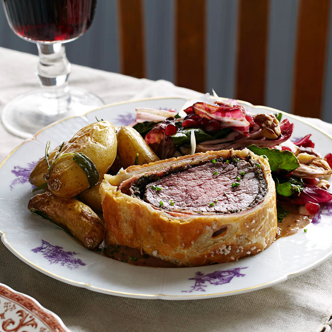 Весь год мы работали для того, чтобы на вашем столе всегда было нечто особенное, и надеемся, у вас — и у ваших желудков — остались только самые приятные воспоминания об этих блюдах. Однако расслабляться рано: на носу Новый год, и нам бы очень хотелось, чтобы этот самый теплый праздничный вечер запомнился вам не только смехом и объятиями ваших близких и друзей, но и по-настоящему достойным угощением. Хорошенько поломав голову, мы нашли идеальный вариант — говядину Веллингтон, традиционное английское блюдо, не менее достойное детище Туманного Альбиона, чем The Rolling Stones или Оскар Уайльд. Нежная говяжья вырезка по рецепту готовится в духовке. Она запекается в слоеном тесте с грибами, пармской ветчиной и горчицей. Её изумительный вкус превзойдет все ваши ожидания. Для нее не требуется никаких особых ингредиентов, она проста в приготовлении — этот рецепт станет одним из ваших любимых и еще не раз пригодится в самых разных ситуациях, от посиделок с друзьями до романтических вечеров.