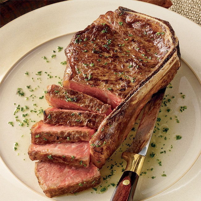 Стейк Нью-Йорк вырезается из поясничной части спины бычка в области головной части вырезки. Нежная текстура стейка и ярко выраженный говяжий вкус ставят его на победный пьедестал рядом с рибаем. В отличие от рибая содержит жировую прослойку лишь по периметру куска, поэтому удовлетворяет пожелания почти всех. Жир при жарке насыщает мясо аппетитным ароматом и помогает раскрываться всем вкусовым ноткам. При желании жир до жарки можно срезать и получить довольно постный кусок мяса с ровной текстурой.