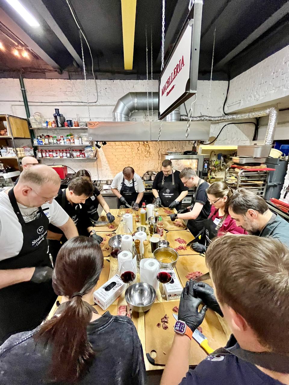 Наша команда тщательно раскрывает все тонкости процесса его приготовления: мы расскажем, как выбрать мясо, как приготовить стейк ресторанного класса дома, и с чем его подать. В расслабленной атмосфере мы прекрасно проводим время, не увиливаем от вопросов и угощаем прекрасным вином — обязательно заходите в гости.