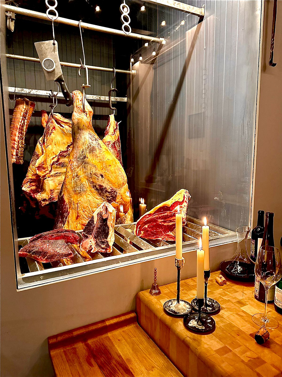 • Меню: Три вида тартара из мраморной говядины, классические и альтернативные стейки влажного и сухого вызревания, три вида соуса для стейка, гарниры и десерт.