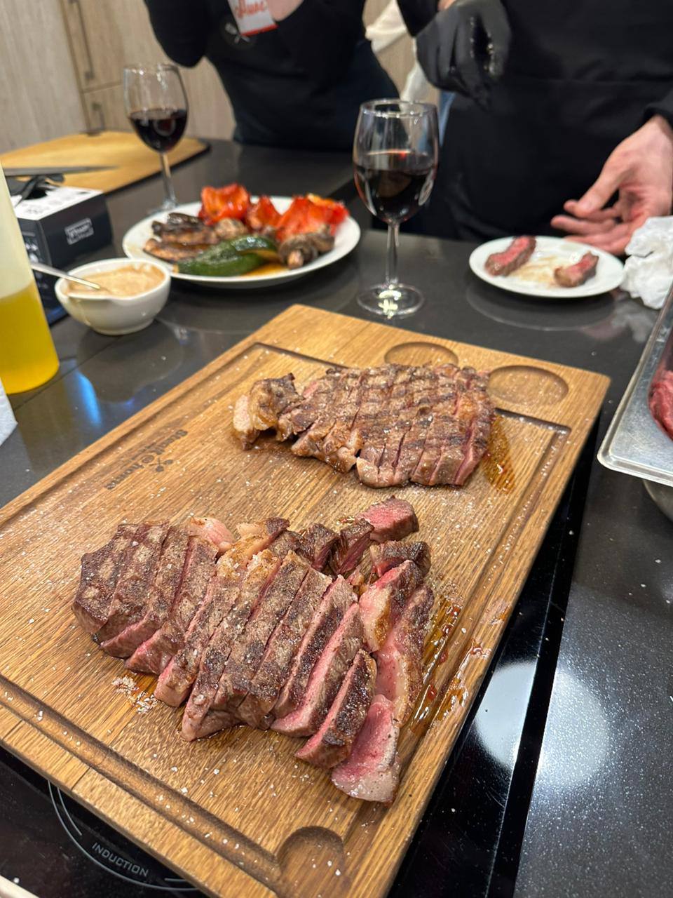 Проводим в пространстве — Korting Sky Room в Артплей с панорамным видом на Москву. Наша команда тщательно раскрывает все тонкости процесса приготовления стейков: расскажем, как выбрать мясо, как приготовить стейк ресторанного уровня дома, и с чем его подать. В расслабленной атмосфере мы прекрасно проводим время, не увиливаем от вопросов и угощаем прекрасным вином — обязательно приходите.