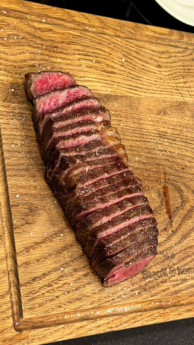 • Меню: Три вида тартара из мраморной говядины, классические и альтернативные стейки влажного и сухого вызревания, фирменный соус для стейка, гарнир и десерт.